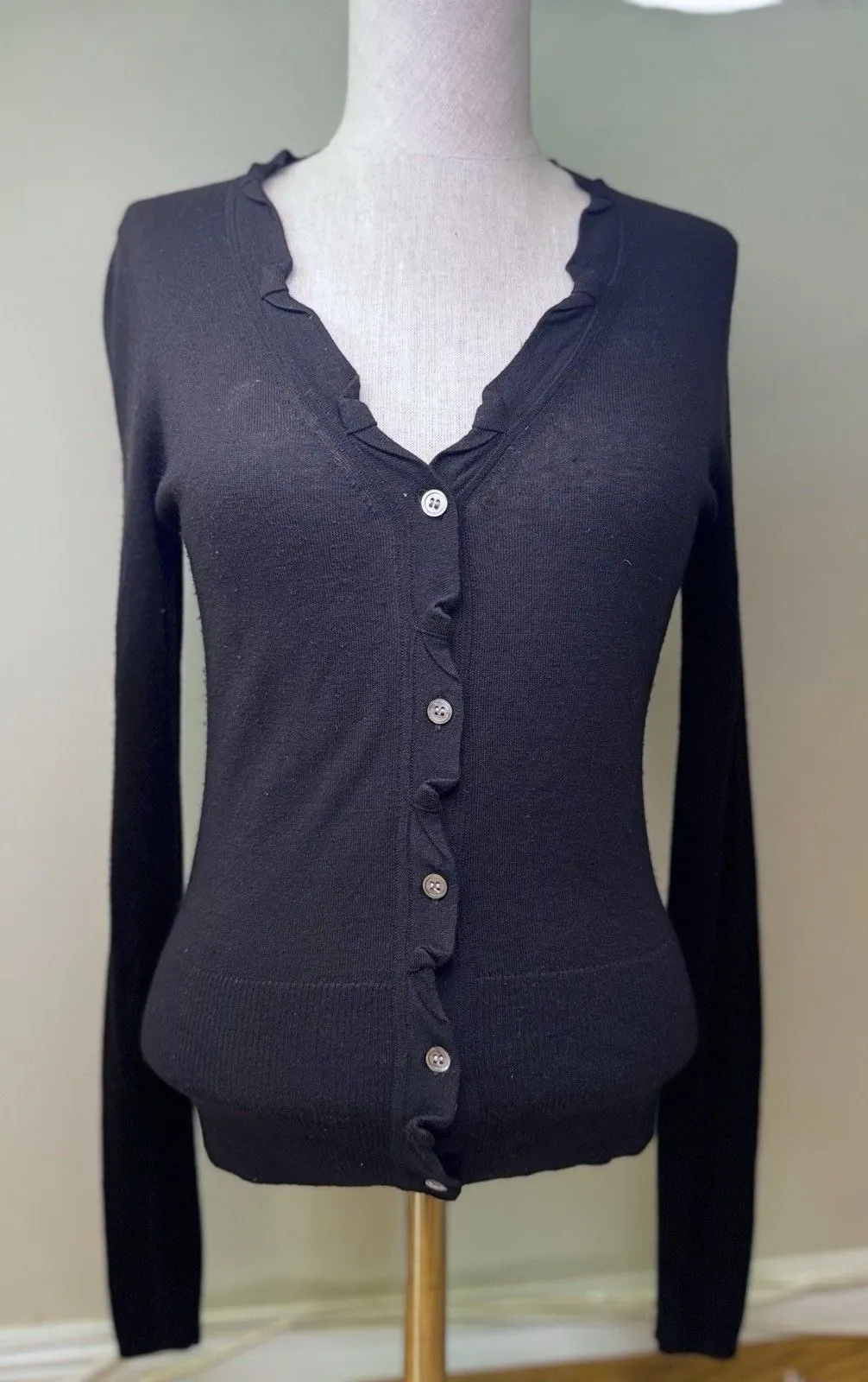 Elie Tahari Women's Silk Cashmere Ruffle Long Sleeve Button Black Cardigan XS - $15 - From Maria