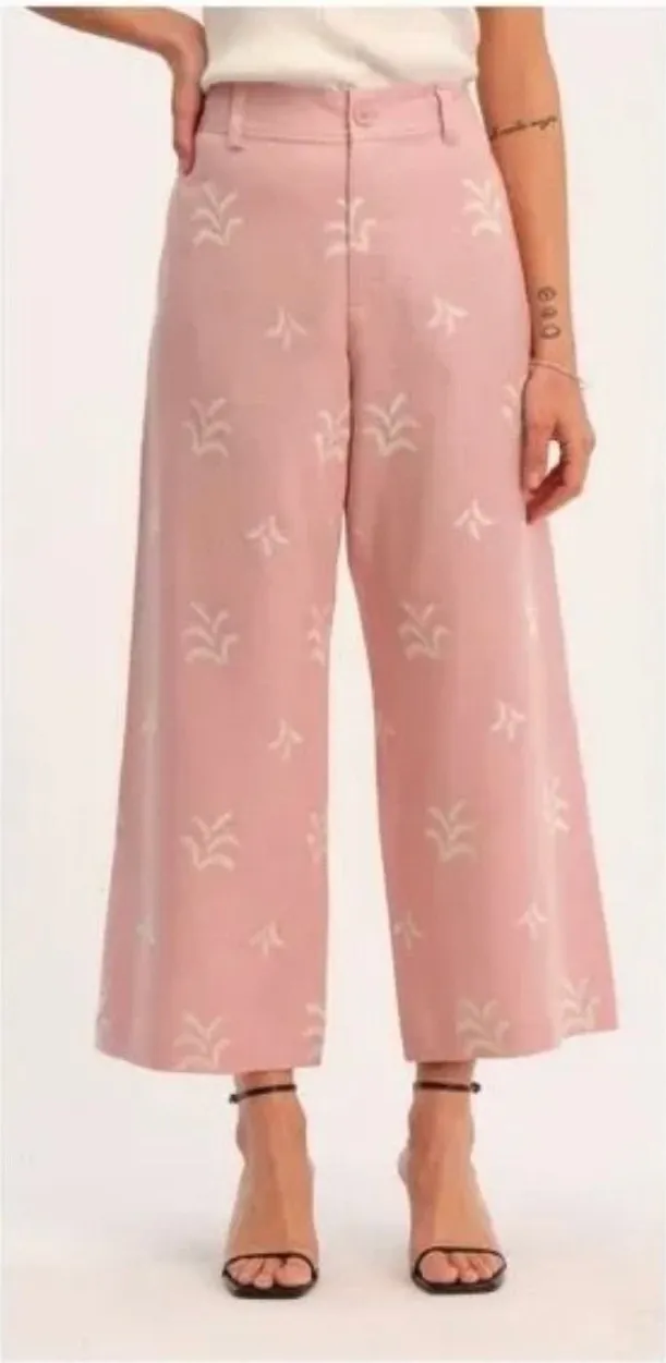 Pre-Owned ** Great Condition**Minor wear/No visible scuffs ** stock image used for reference only (1st Image) Retail $80.00 Approx 37.5"L, 27"Inseam Elie Tahari viscose-linen pants in soft mauve. Featuring a wide, flowy cut to allow for graceful movement and a relaxed feel. Perfect for a day out or a casual office setting. Fly front Flowy pants Embroidery detail Back pockets Viscose/linen blend