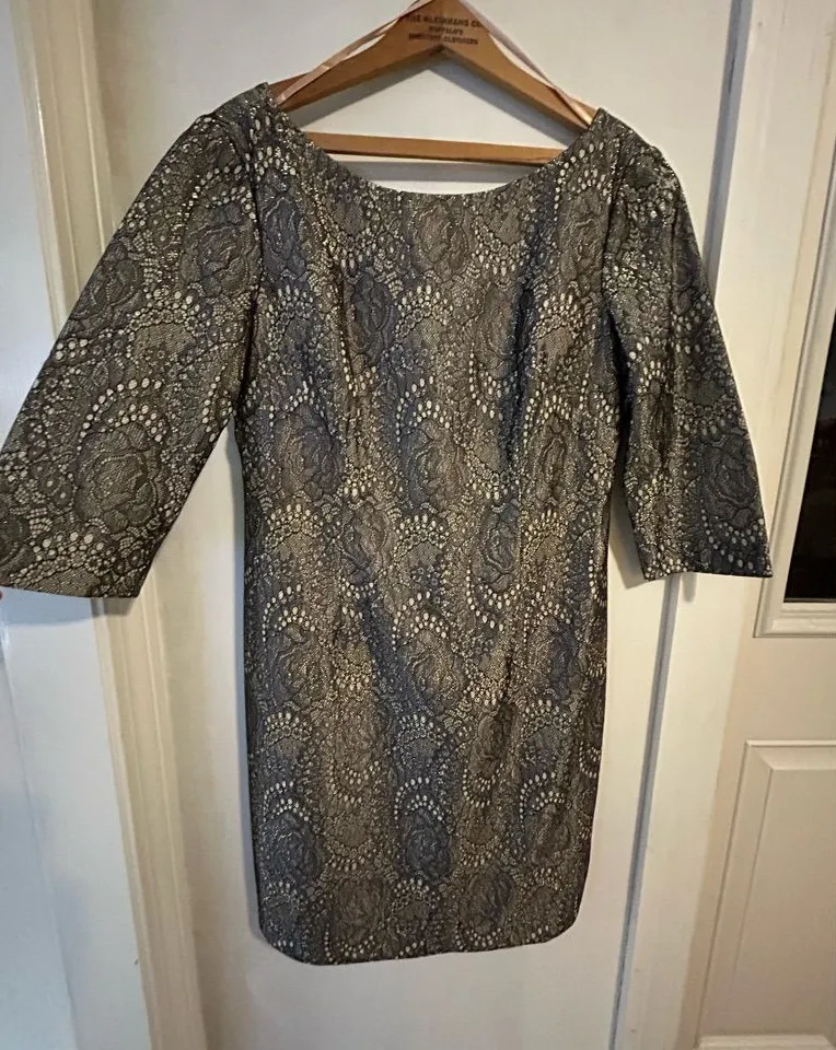 Eliza J black and gold metallic lace dress. Size 12. I have heard this called bonded lace as it does... Show more