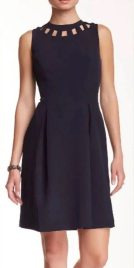 Eliza J Black Sleeveless Sheath Fit And Flare Pleated Cutout Mini Dress Size 6 in excellent conditio... Show more