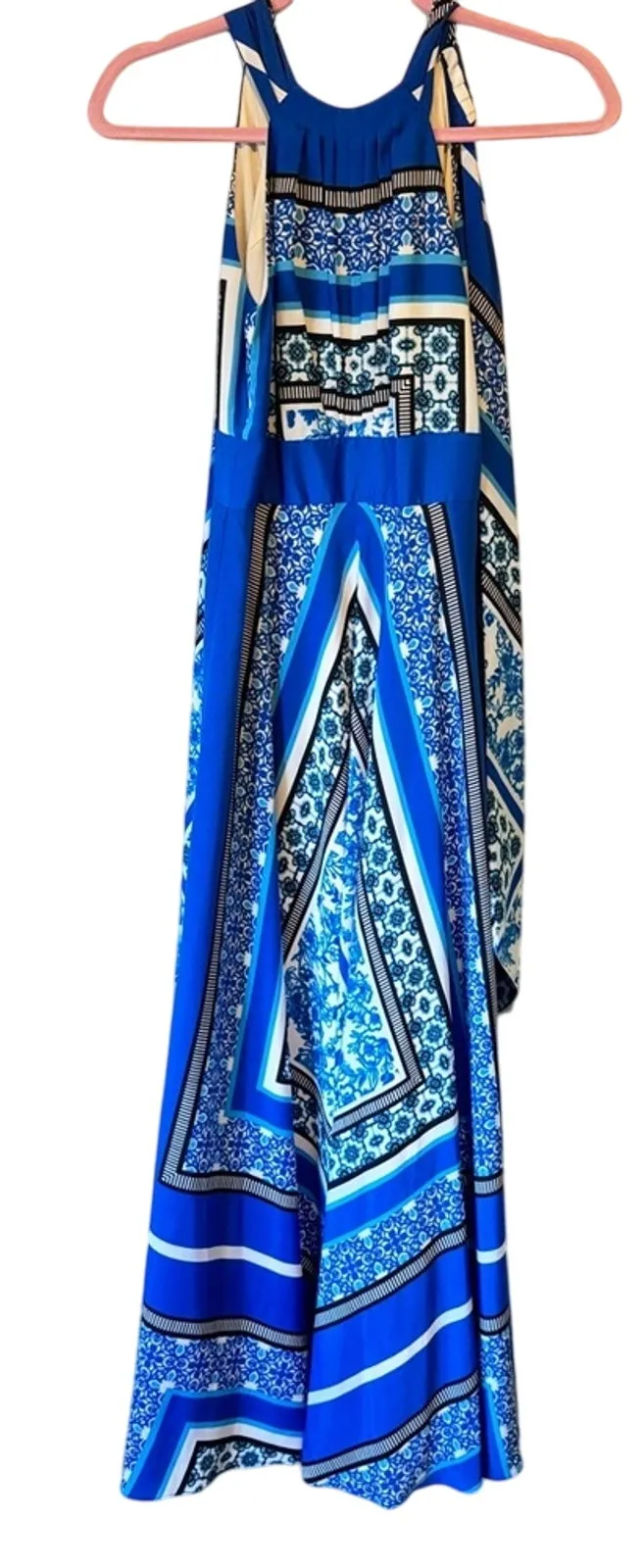 Eliza J Blue Halter Scarf Print Maxi Dress Womens 2P Boho Sleeveless Summer - $75 - From Lisa