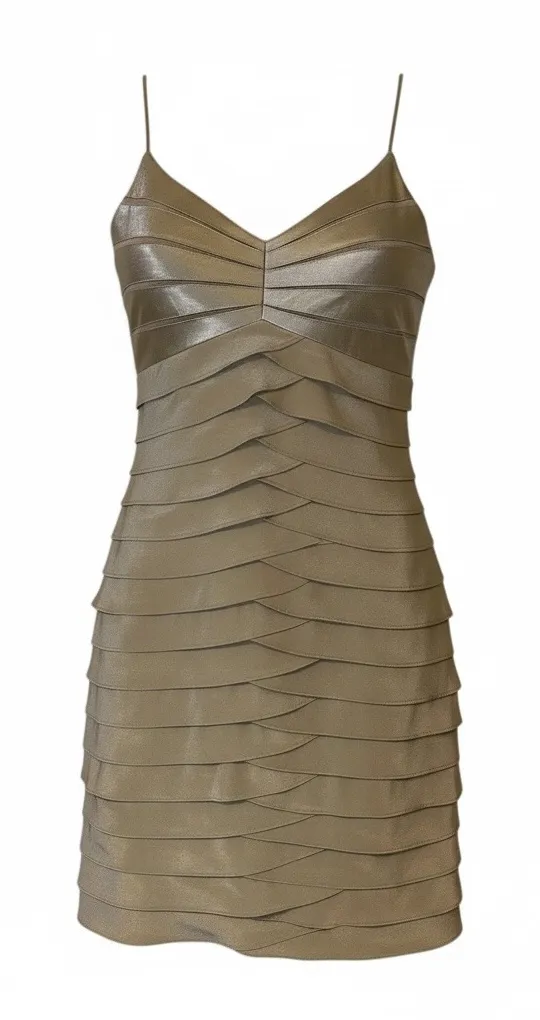 Eliza J Champagne Satin Tiered Pleated Cocktail Dress Size 6, cocktail, party Tan - $44 - From Donna