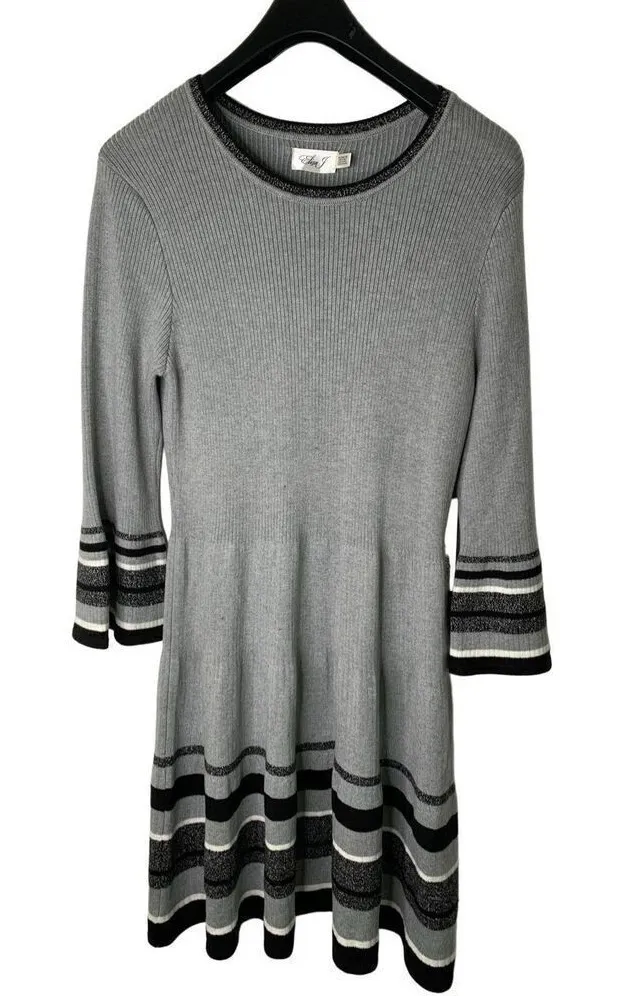 Eliza J Dress Striped Bell Sleeve Office Knit Gray Ribbed Crewneck XL NEW NWT Gray - $50 New With Tags - From Jeremy