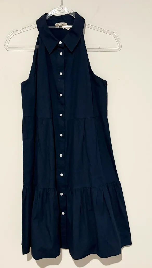 Elia J Button Front Shirt Dress Navy Blue Size 8. 100% cotton. Good condition Measurements Pit to pit: 18” Waist: 16” Length: 36” Tags: preppy, country club, neutral, nautical, contemporary