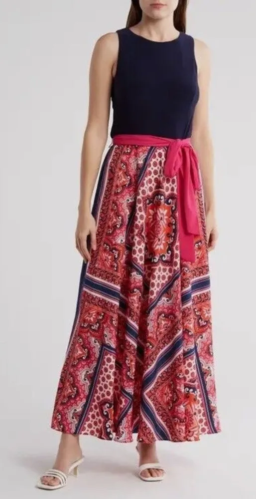 Eliza J Handkerchief Bandana Boho Maxi Dress‎ Navy Pink Orange Size 16 NWT Blue - $52 New With Tags - From Crystal