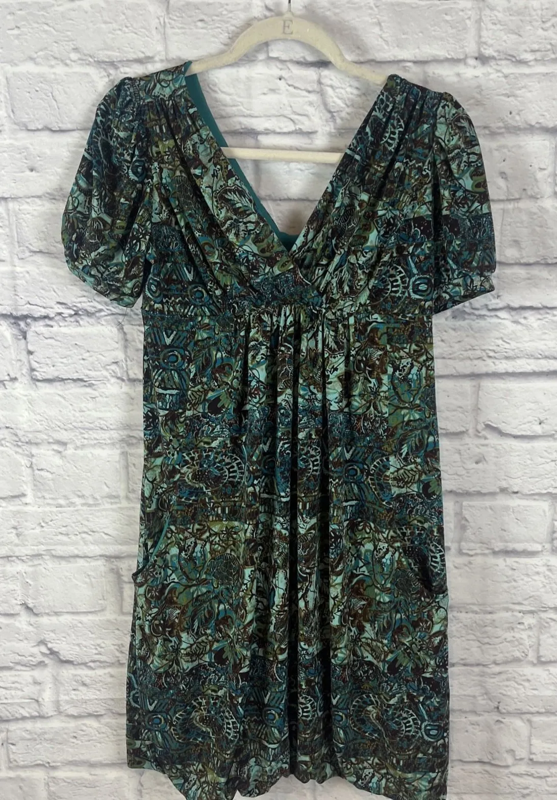Eliza J New York women's short sleeve vneck summer dress with balloon hem & pockets. Size 6 All measurements are approximate & taken laying flat Armpit to armpit ~ 15.5 Shoulder to hem ~ 33.5 Dry clean Excellent preloved condition. No rips, tears or stains. Smoke free home Boho, bohochic, bohemian, earthy, nature, flattering, festival, fairycore