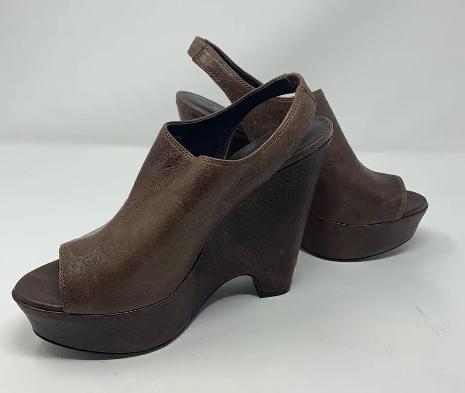 Elizabeth & James Strut Brown Leather Platform Wedges Size 9.5B Excellent preloved condition Sti... Show more