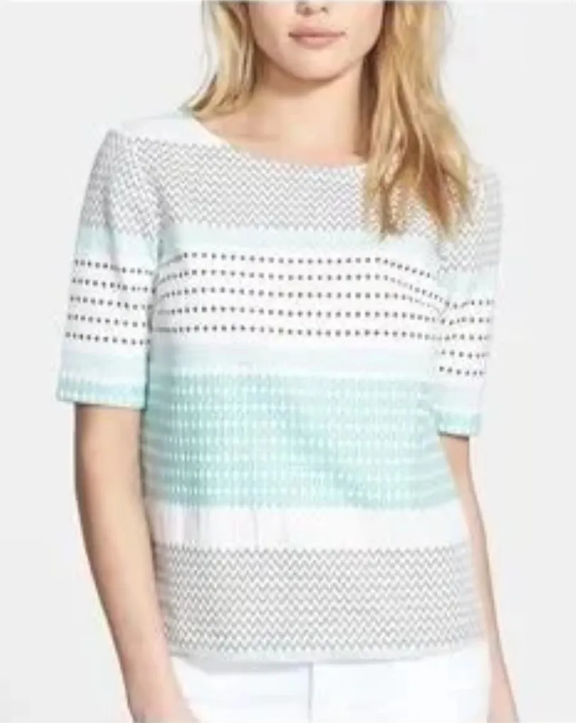 Ella Moss White Brown Teal Zan Back Zip Jacquard Top Women's XS Casual Cottage Pre-Loved In excell... Show more