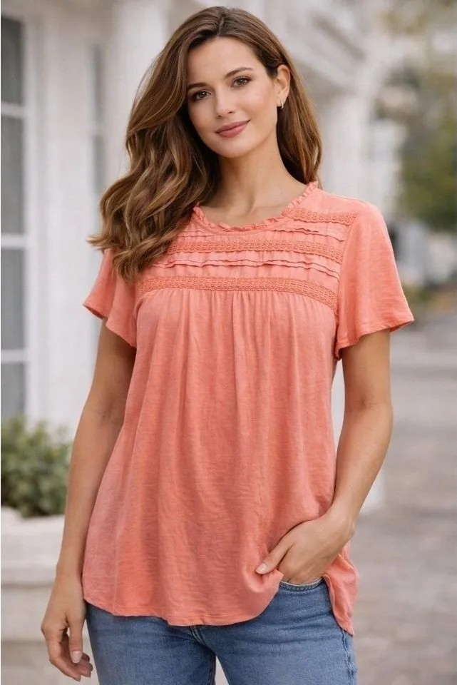 Ella Moss women's coral pink short sleeve top with a soft boho-inspired silhouette. Features delicat... Show more