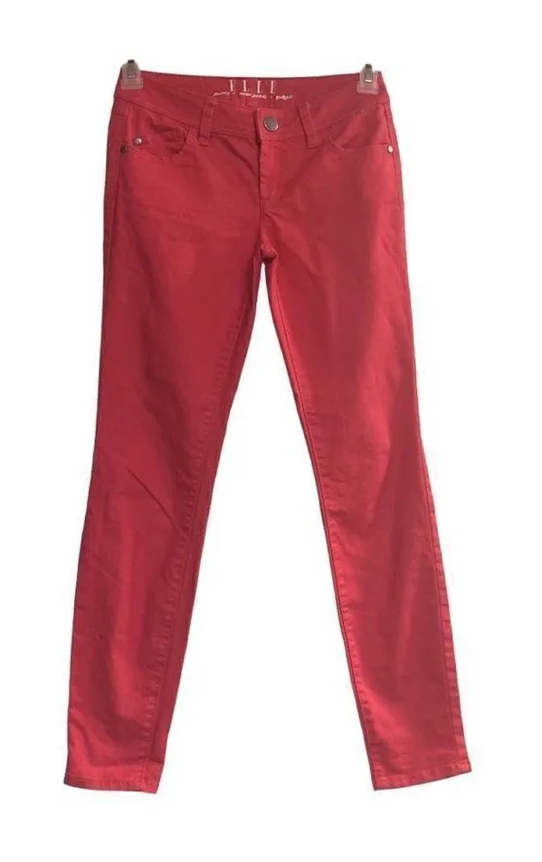 BRAND: Elle SIZE: 2 COLOR: A Mixture between Red and Pink, that’s why I chose both CONDITION: Pre Owned MEASUREMENTS: See Pictures MATERIAL:74% Cotton, 24% Polyester, 2% Spandex OTHER DETAILS: machine wash 5 pockets with rivets Belt Loops Zipper & Button Closure Please see approximate measurements in pictures before purchasing. Use your own judgment as to the fit. Send me an offer. I will either accept or counter! W25, 8