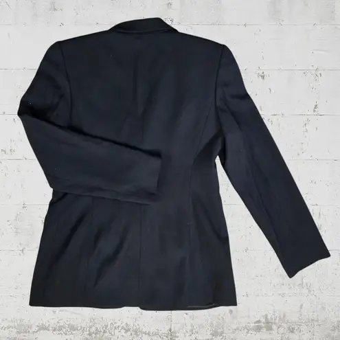 80s Black Double Breasted Blazer Brand: Linda Allard Ellen Tracy Size: 6 Style Name: 12081496 Color: Black NWT Deadstock Vintage from the 80s Made in the USA Double breasted Gold metal crest buttons Front flap welt pockets Peak lapel collar Lined Oversized fit No stretch Armpit to armpit: 19" Top to bottom: 28.5" 50% Wool 50% Rayon Smoke-free home **All measurements are taken laying flat using a fabric measuring tape. Please note that these measurements are approximate based upon my measurements.