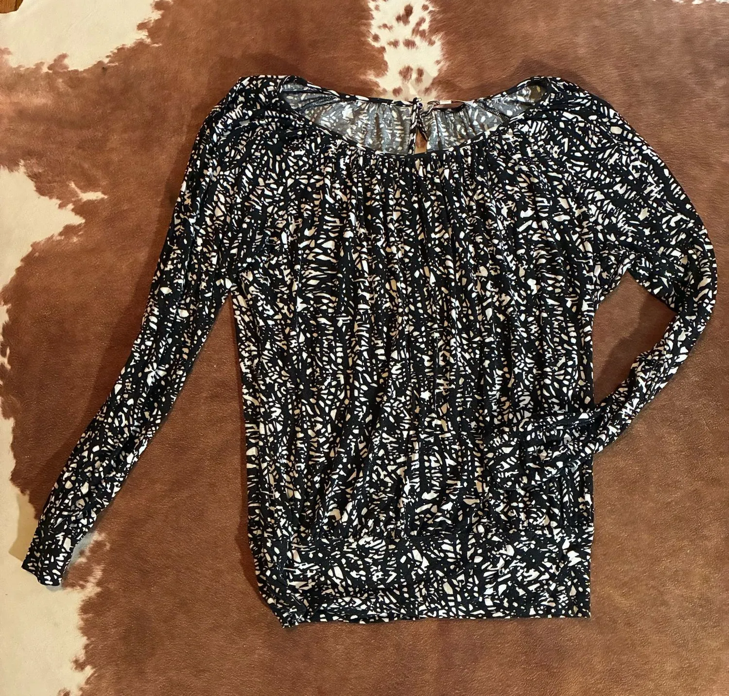 Ellen Tracy ecentric black and white top size medium The part to hook at neck is broke easy fix if you know how to sew! - $10 - From Camryn
