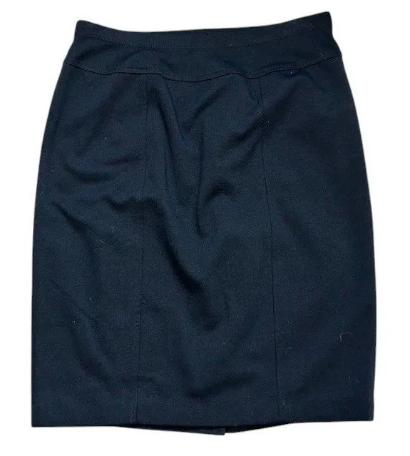 Exude confidence in this sophisticated Ellen Tracy pencil skirt. A sleek and versatile wardrobe staple, this black skirt features a tailored silhouette, perfect for creating a polished and professional look. The refined design ensures a flattering fit, while the classic color makes it easy to coordinate with a variety of tops and accessories. Flat Lay Measurements: Waist = 14" Length = 20.5" Type: Skirt Style: Straight & Pencil Skirt Length: Knee Length Material: Polyester, Rayon, Spandex, Polyester Blend Fabric Type: Twill Features: Stretch, Slit Character: Office Girl, Business Woman, Corporate, Professional, Classic Keywords: Ellen Tracy, pencil skirt, black skirt, career skirt, business skirt, office wear, women's skirt, formal skirt, professional skirt, classic skirt, interview attire, size S, work attire, corporate wear