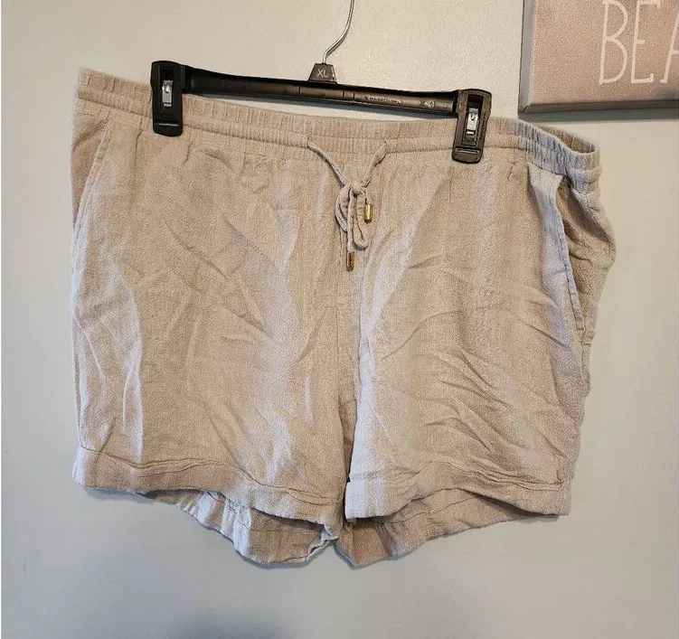 Ellen Tracy Womens Chino Shorts Cream Size XL Linen Blend Pockets Black - $27 New With Tags - From Ashley