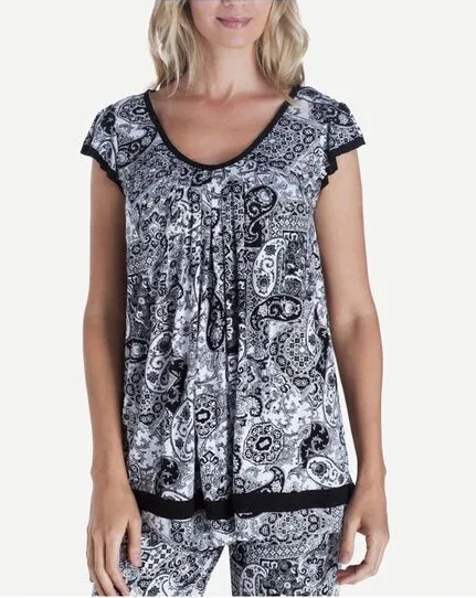 Ellen Tracy Women's Yours to Love Flutter Sleeve Paisley Top Size Large Black - $26 New With Tags - From T