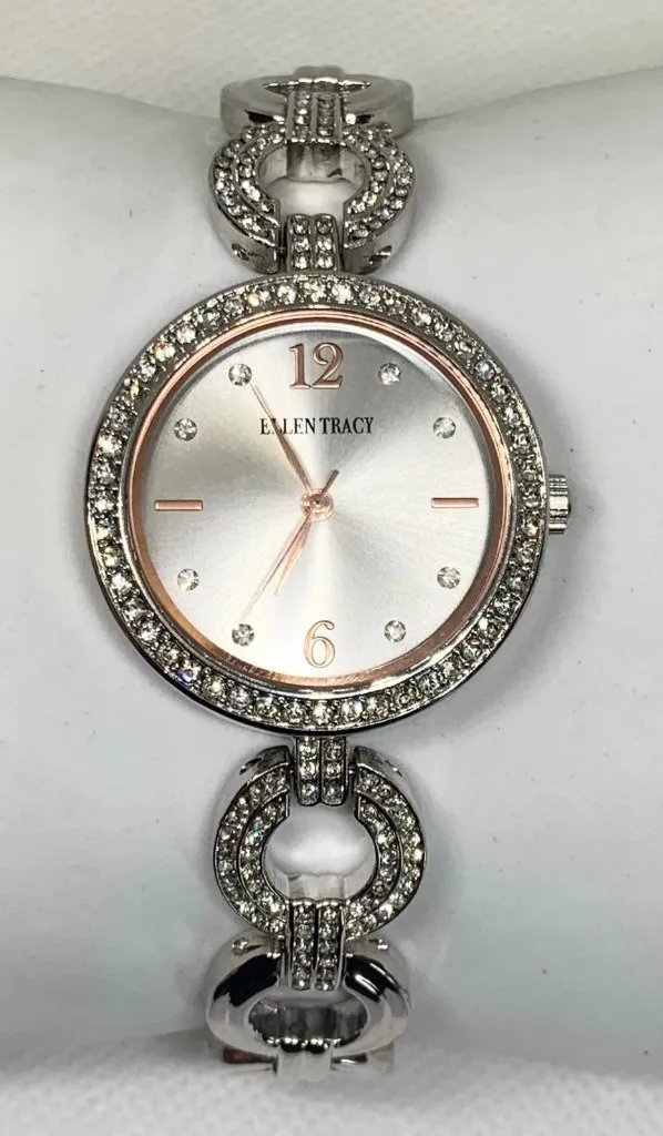 Ellen Tracy silver tone women’s watch 30mm quartz analog rhinestones running - $20 - From Watch