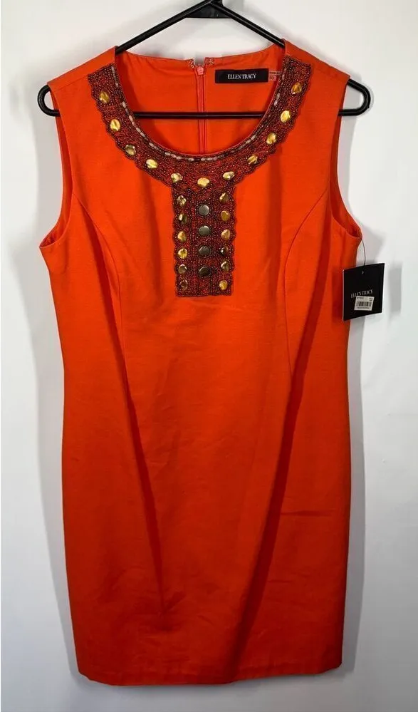 Ellen Tracy sleeveless mandarin intricate neckline dress size 10 NWT NWT Weight 16 Length 38 Chest 19 (Inches) See pictures for additional details. Measurements are approximate and provided as a courtesy, not a guarantee of fit. Smoke free, pet free home. Actual colors may vary due to differences in lighting and computer monitors.