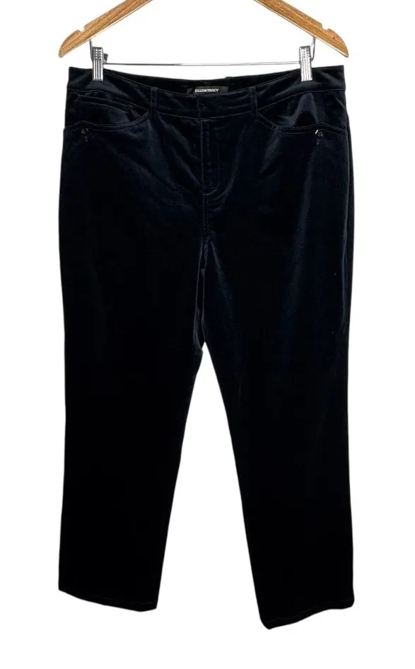 All orders shipped next business day. Bundle items for discount and save on shipping. Ellen Tracy Velvet Pants Cropped Career Casual Blue Women Size 12 Elegant blue velvet pants offering both comfort and style. These blue Ellen Tracy pants feature a classic five-pocket design with a modern cropped length. The soft velvet fabric adds a touch of luxury, while the tailored fit ensures a flattering silhouette. Condition: Excellent Style: Dress Pants Color: Blue Department: Women Size: 12, Length- 39.5", Waist- 17.5" (35"), Rise- 12", Inseam- 27.5" Material: Velvet, Modal, Spandex, Polyester Leg Style: Straight Features: Pockets, Comfort, Lightweight, Slimming Fabric Type: Velvet Keywords: Ellen Tracy, velvet pants, cropped pants, blue pants, size 12, career pants, casual pants, womens pants, dress pants, classic, retro, elegant, stylish, comfortable TD