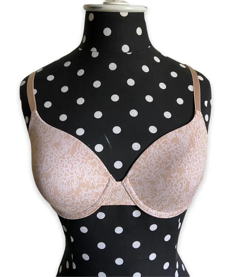 Ellen Tracy Womens Bra Size 34C Floral Print Beige T-Shirt Tee Shirt GENERALLY SHIP SAME OR NEXT DAY FROM FLORIDA!!! Lightly padded for modesty. Adjustable straps 3 sets of two eyes Worn very briefly and washed. Never dried in dryer. Style 59415P2