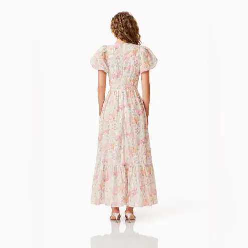 Elliatt Alimia Maxi Dress Multi Floral Size Small NWT Elevate your style with the Elliatt Alimia Maxi Dress. The V neckline and soft puff sleeves offer a romantic touch, while the pleated bust and frilled maxi skirt add feminine flair. Made from embroidered georgette, this dress exudes elegance and features a comfortable 90% polyester and 10% spandex fabric blend. Perfect for any occasion. Features - V Neck - Puff Sleeves - Embroidered Georgette Content + Care - Polyester/Spandex - Dry clean recommended - NWT preproduction item no care tag Flat Lay Measurement: - Pit to pit: about 36in - Waist: about 28in - Length/ Shoulder to hem: about 55.5in Please note: We do our best to ensure that our photograph products are as true to colour and condition as possible, but variations may occur due to the nature of the products we sell. Sizes of items listed in descriptions are approximate and are measured as the overall width laying down flat.