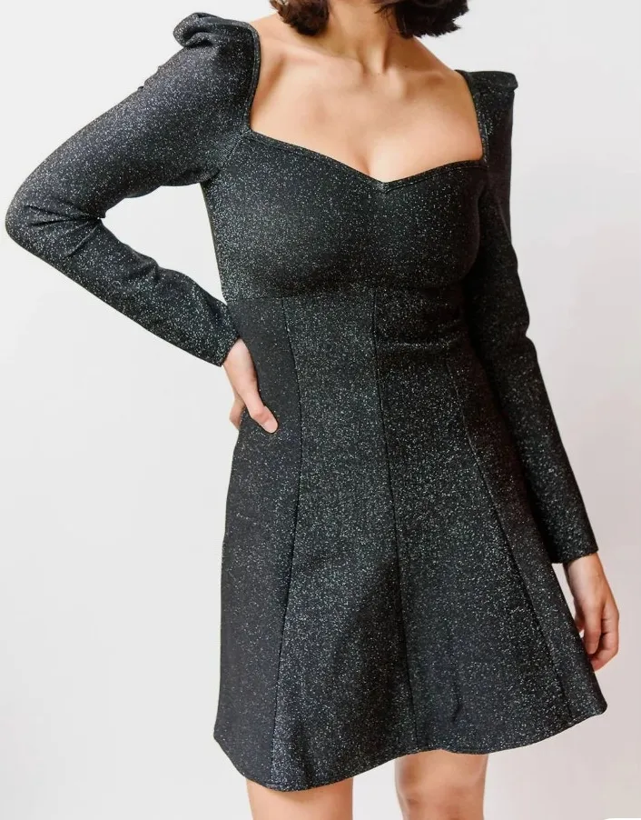 Elliatt Mallory Long Sleeve sweet heart neck line Mini Dress Black Shimmer L Silver Size L - $85 New With Tags - From Miriam