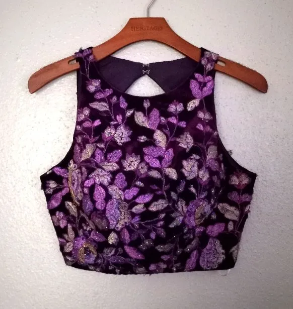 Ellie Wilde Mon Cherie 10 Purple Velvet Beaded Crop Top Formal - $35 - From Bestbargain