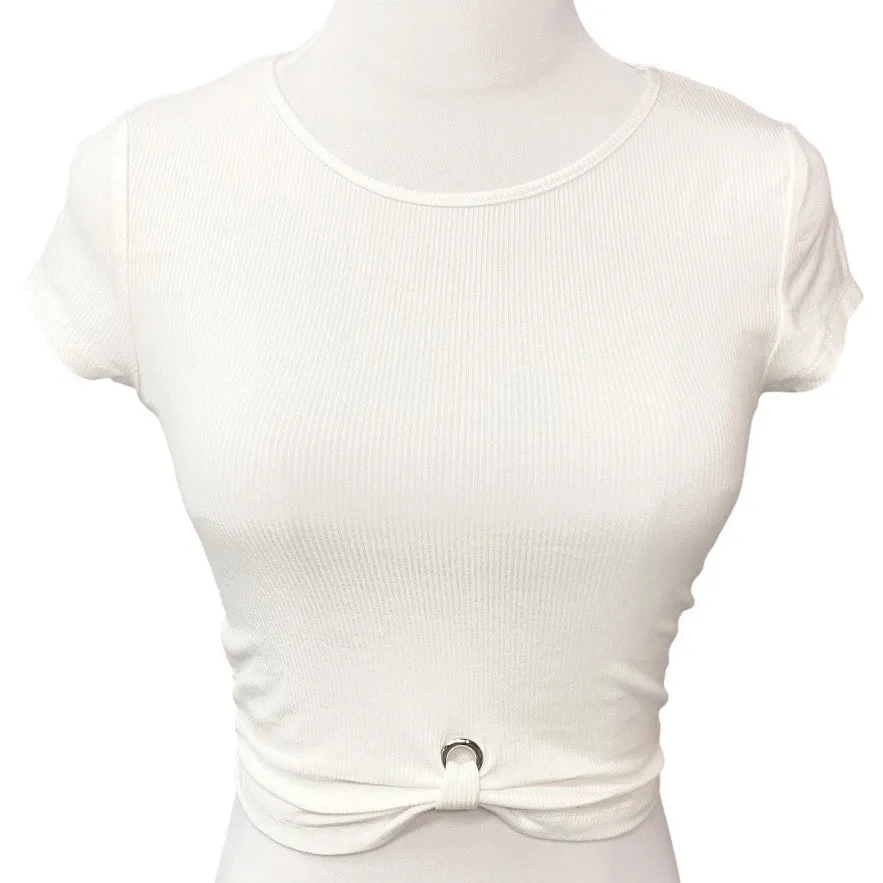 Short sleeve Ribbed Pullover closure Casual Cropped Rayon blend Machine wash Reasonable offers are accepted. See photos for approximate measurements. From a smoke free, pet friendly home. Tags: Short Sleeve, Ribbed Fabric, Round Neck, Cropped Top, Casual, Chic, Stylish, Trendy, Everyday Wear, Minimalist, Boutique, Fashion, Modern Style, Christmas present, birthday present, gift