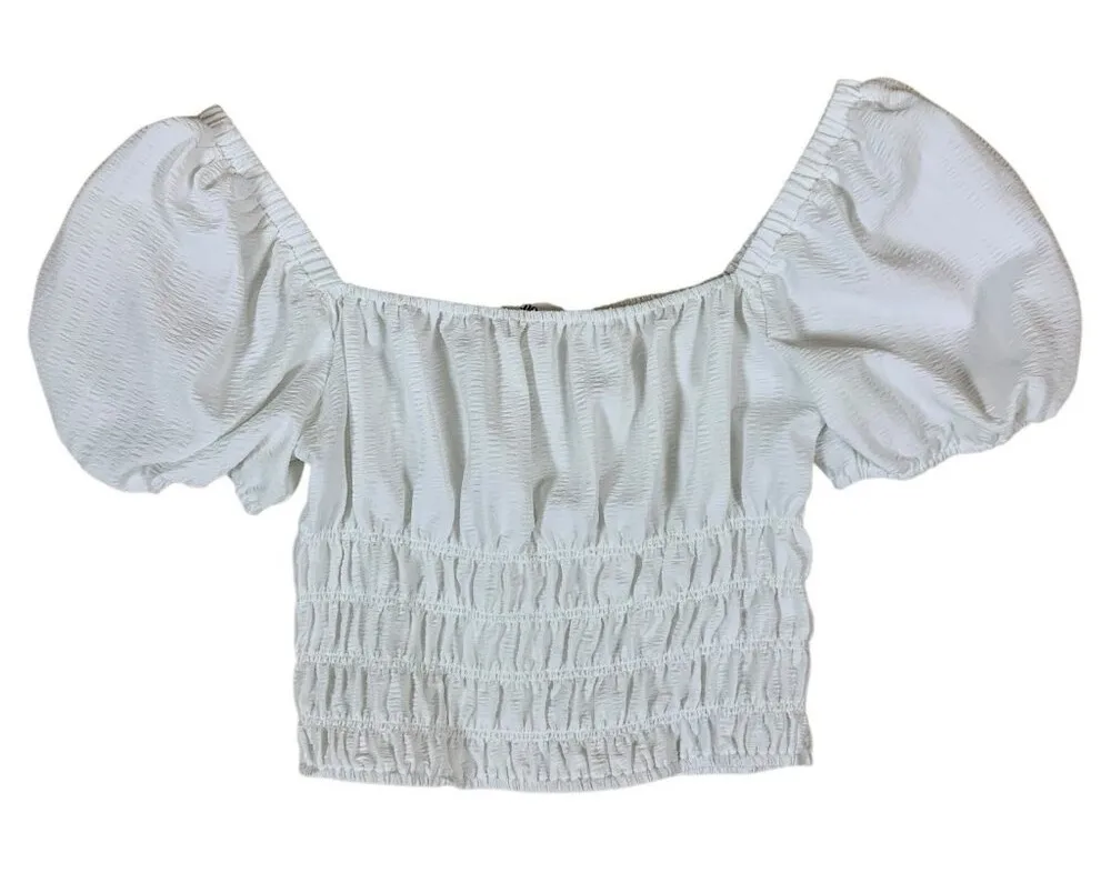 Elodie White Smocked Puff Sleeve Crop Top Blouse Women M Cottagecore Trendy Cute Size M - $18 - From Rodica