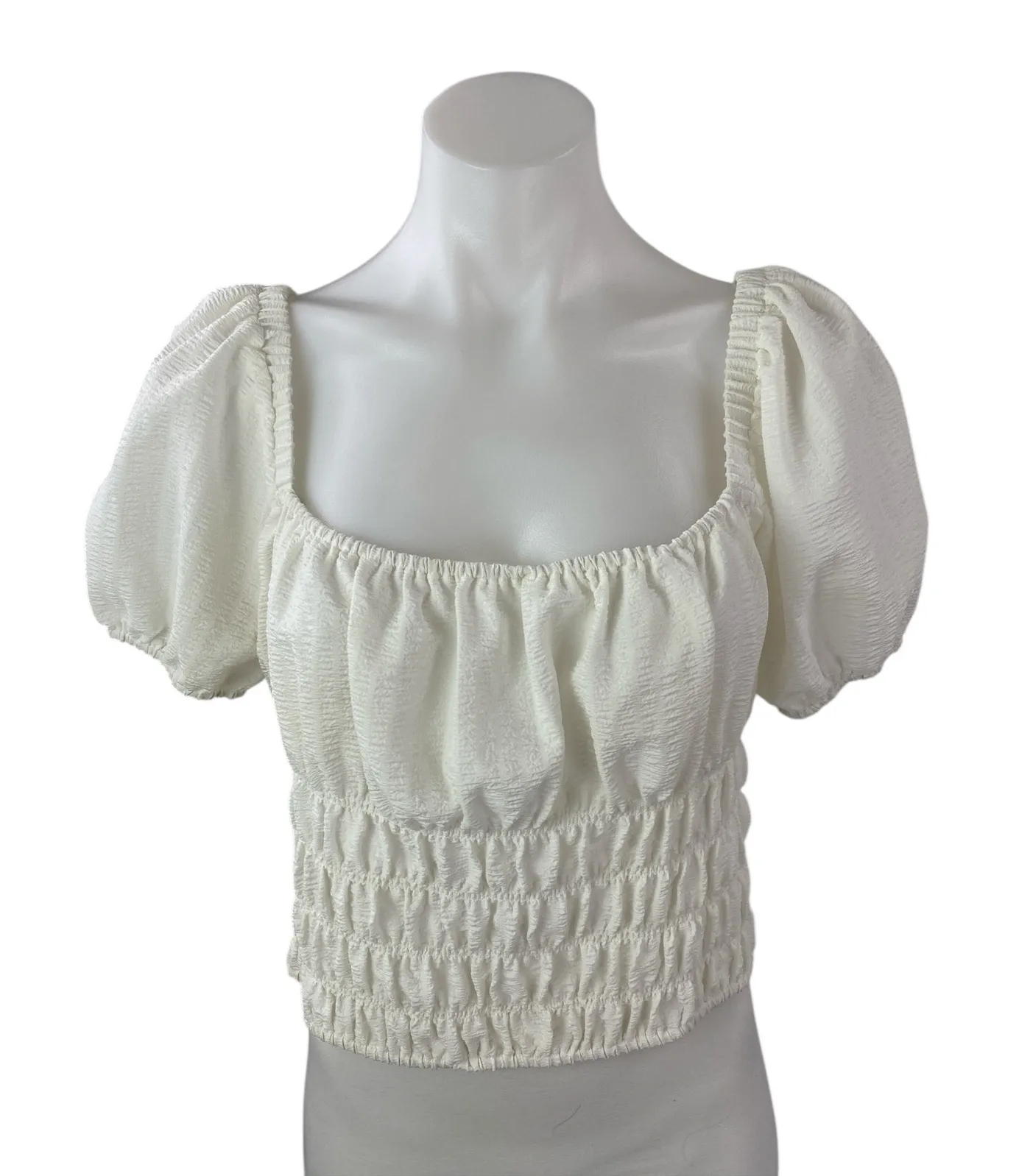 Elodie White Smocked Square Neck Short Puff Sleeve Peasant Crop Blouse Top Sze XL Size: XL Conditio... Show more