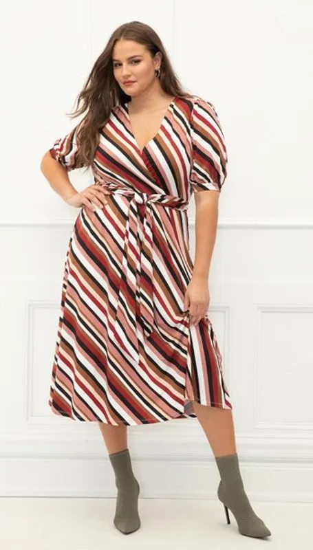 Eloquii Elements Womens Dress Sz 20 Plus Size Striped Midi Faux Wrap Tie Waist GENERALLY SHIP SAME... Show more