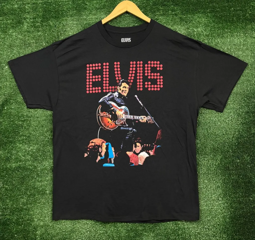 Elvis Presley King of Rock N Roll T-Shirt Size Extra Large measures 24 inches pit to pit 30 inches long Amazing shirt perfect for fans of the legendary artist Elvis Presley New overstock in great condition