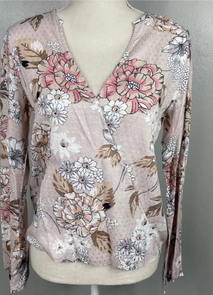 Em Crème Floral Wrap Blouse Size Small Pink - $15 - From Nicole