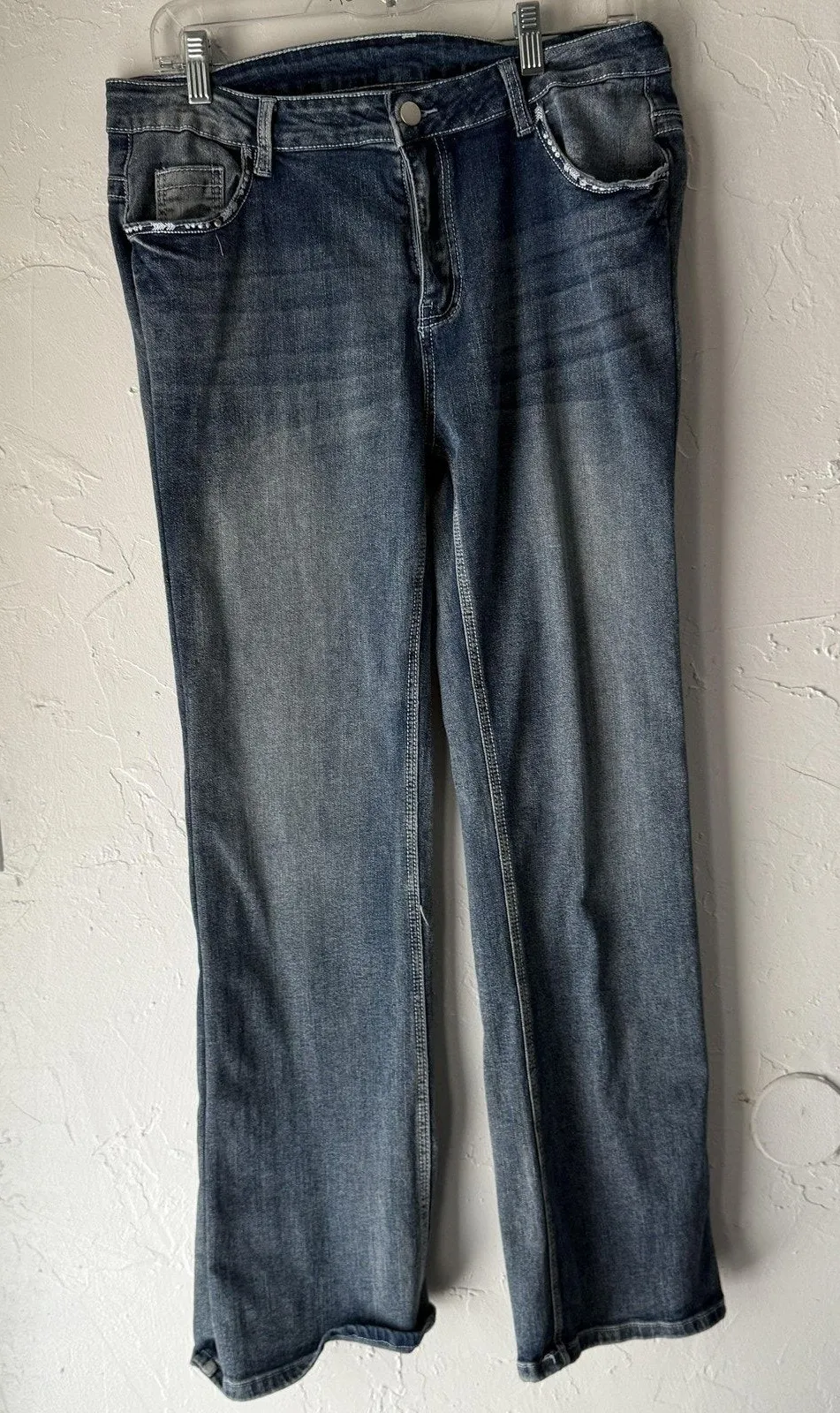 Embroidered Horse Jeans Womens XL Blue Mid Rise Stretch Denim Straight Leg Pockets Condition: Good pre-owned condition with light wear and some fading throughout. No holes or stains noted. See photos for details. Material: 90% Cotton, 10% Spandex – soft yet stretchy for comfort and fit Tag size: XL (Womens) Classic blue denim with faded wash Five-pocket styling with unique embroidered horse design on back pockets Button and zipper closure at front Belt loops at waistband Approximate flat measurements shown in photos for waist and inseam (please review images) Made in China Great for casual wear, horseback riding, or adding a touch of equestrian flair to your outfits