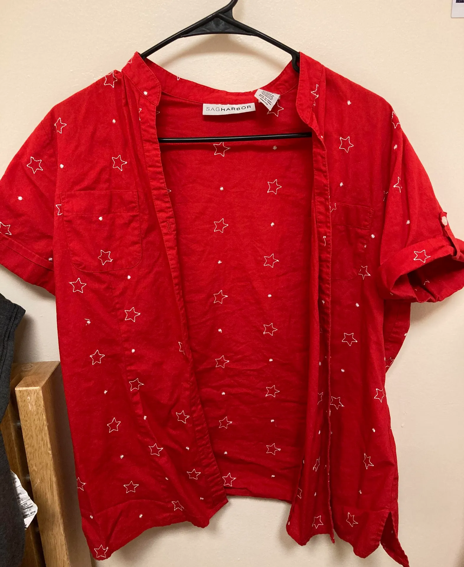 Embroidered Red Button-Up Shirt Size M - $13 - From Grace