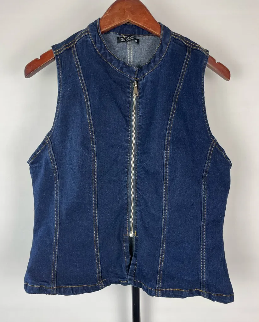 Emerson Lang Dark Blue Wash Stretch Denim Y2K Moto Edgy Sleeveless Zip Vest Size L - $200 - From Alyssa