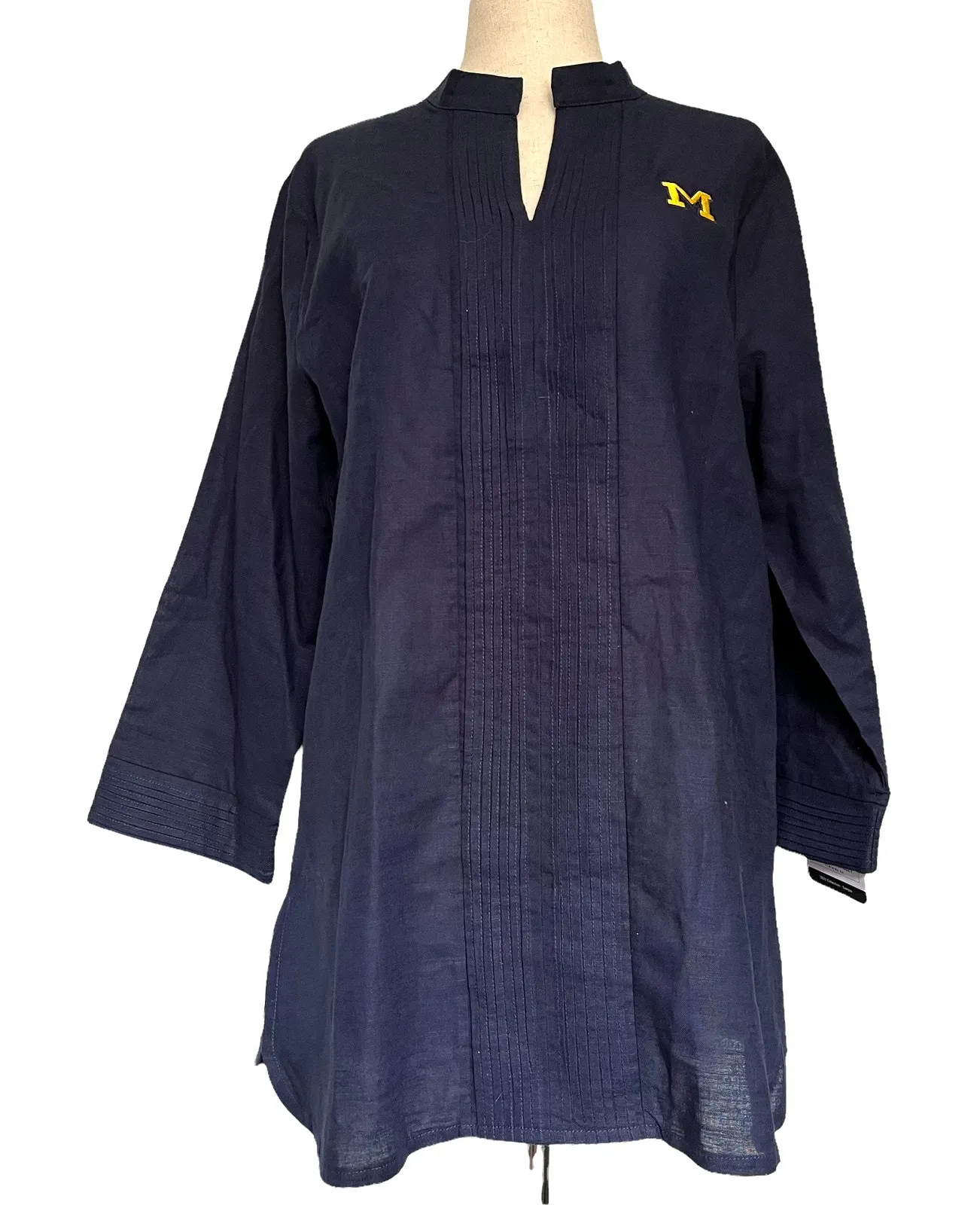 Blue Emerson Street University of Michigan UofM Pleated Tunic Flax Top with Embroidered Logo Mandari... Show more