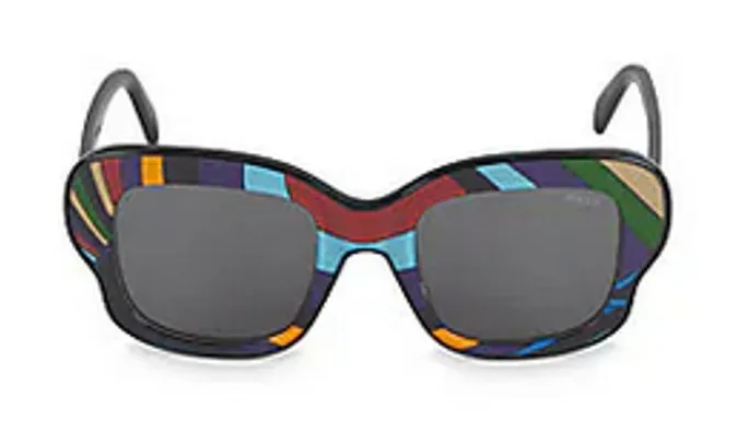 These butterfly sunglasses from Pucci feature solid lenses and a sculpted acetate frame, offering a bold silhouette with a polished finish. 100% UV protection Solid lenses Acetate Imported SIZE 51mm lens width 22mm bridge width 140mm temple length Style Number: 0400023128996 Cruise wear, nautical, tropical, bright, vacation, travel, vacay, summer, spring break, swim, resort wear, peachy, water, pool, lake, surf, boating, sunbathing
