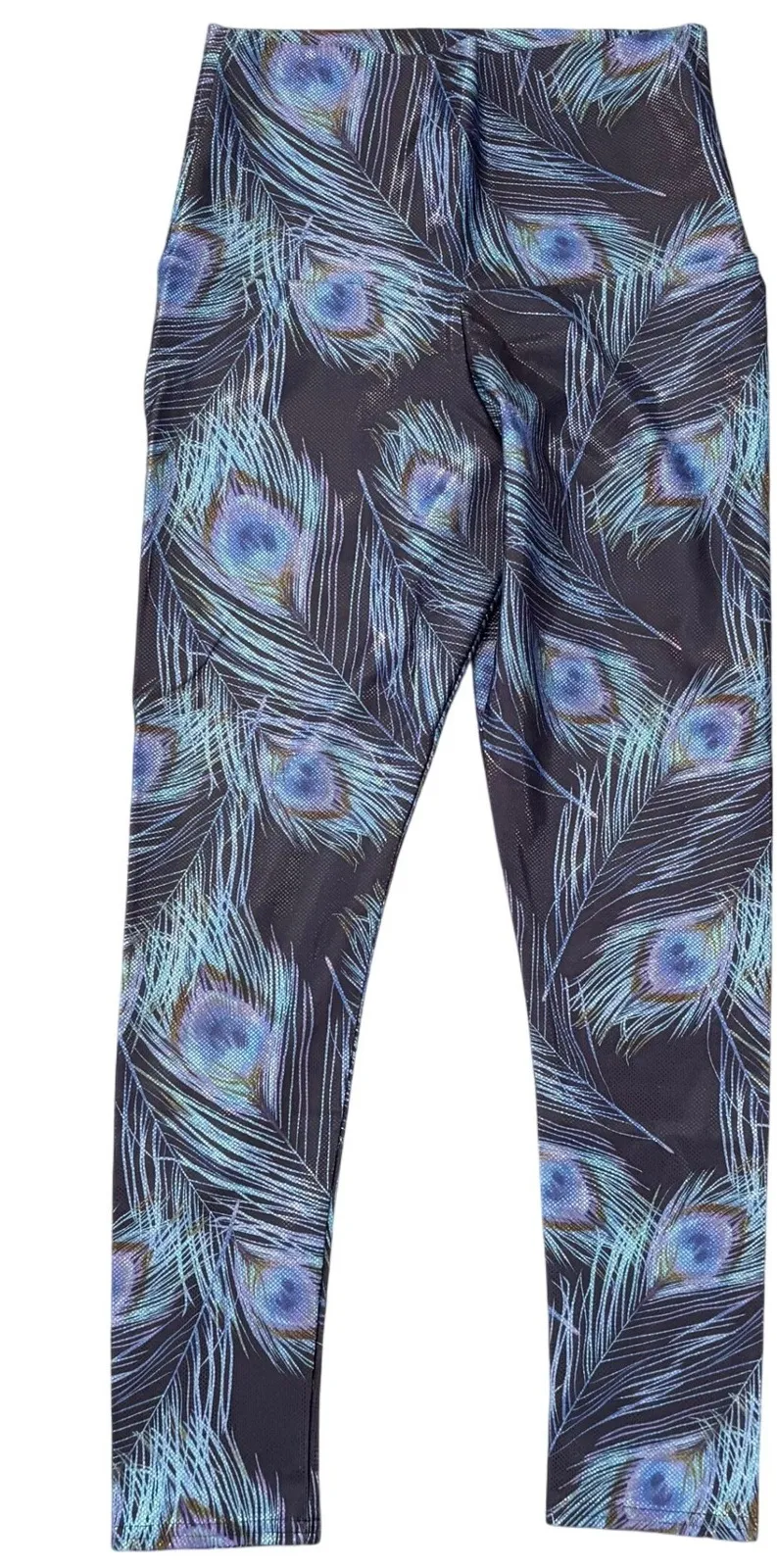 Emily Hsu Peacock Feather Leggings Sz L Blue Activewear Workout Irridescent Size L - $35 - From Jessica