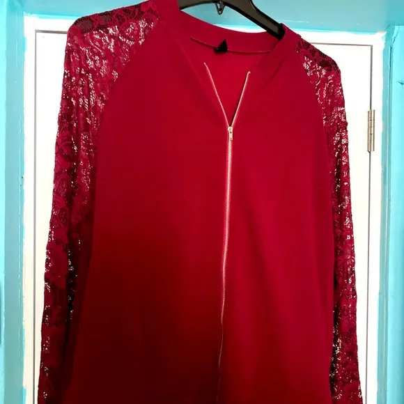 Emily Rose lace sleeves XXL Wine Floral Sleeves Zip Up Jacket NEW - $23 - From Angelica