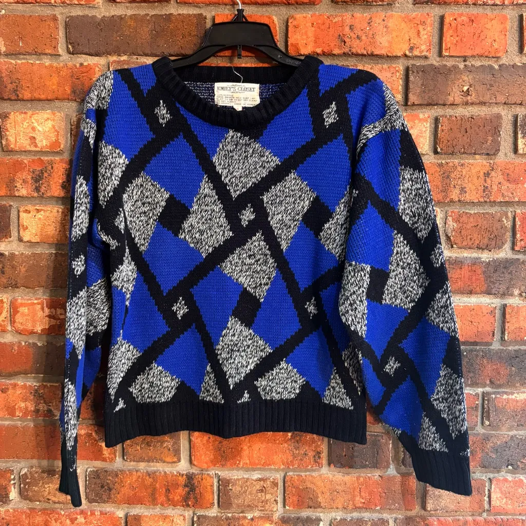 Emily’s Closet womens vintage abstract geometric ski sweater blue S - $20 - From Christine