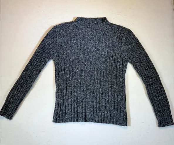 A women's gray ribbed mock neck long sleeve sweater top. This stylish piece offers a classic silhoue... Show more
