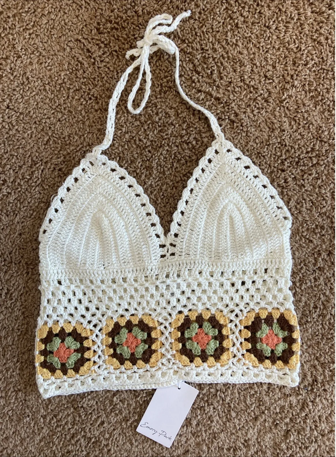 Emory Park‎ Crochet Boho Festival Granny Square Halter Tank Top Shirt Small NEW - $18 New With Tags - From Hilary