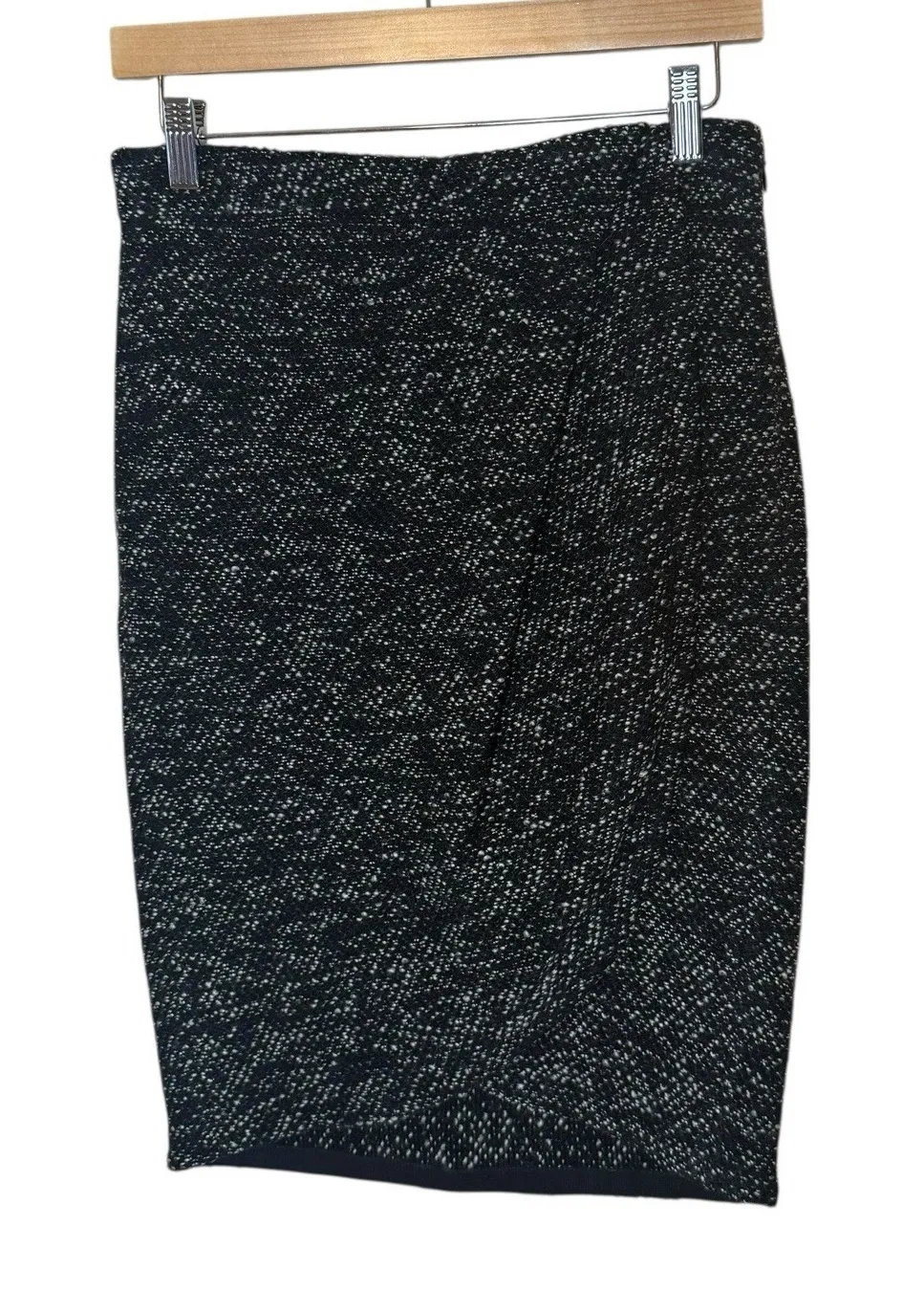 Excellent Pre-Owned Condition (see pics for details) Features: •Style Profile: Emporio Armani Black White Tweed Pencil Wrap Skirt Size 42 US 6 Quiet Luxury •Flaws: No holes, stains, or tears •Please see photos for measurements (in inches) laying flat- Waist: 14.5" Waist to hem: 23" •Washing Instructions: Dry Clean Size: IT 42 US 6 Color: Black White Tags: Tweed, Quiet Luxury, Designer, Old Money, Career, Professional, Office, Neutral Smoke free home. I am happy to answer your questions and am open to reasonable offers! Super fast shipping: I ship out the next business day! Please note that all pre-owned items may have slight imperfections.