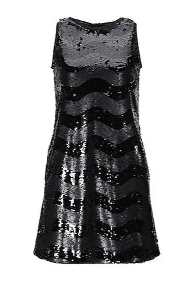 Turn heads at your next event with this stunning Emporio Armani Sequin Mini Dress. The knee-length black dress features a stylish chevron pattern, perfect for a night out - be it a cocktail party, formal gathering, or special celebration. Made from a blend of polyester and polyamide, this dress offers comfort and style with the added functionality of pockets. Standard size S (4-6), new with tags.