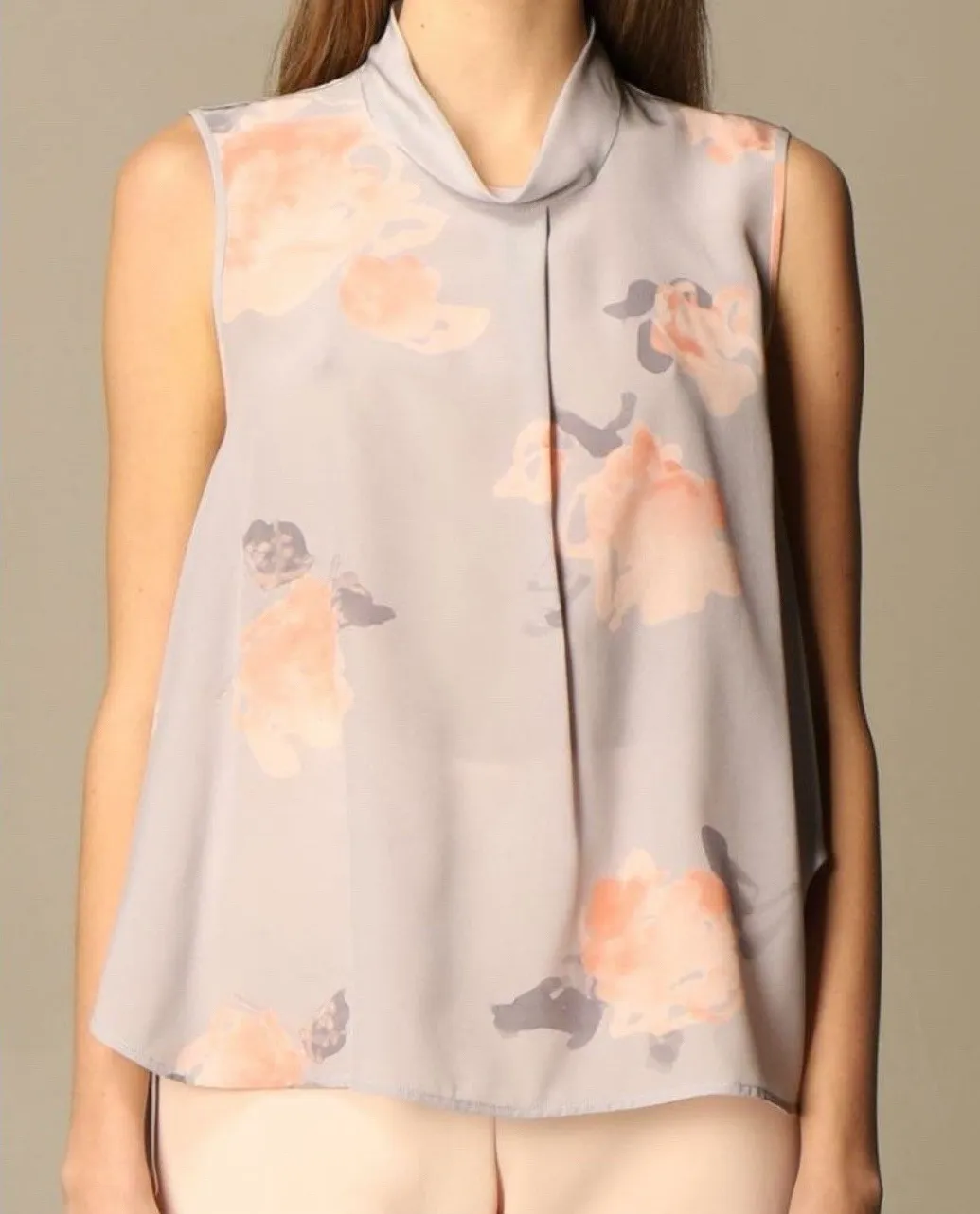 Emporio Armani Sleeveless Silk Floral Blouse Office Quiet Luxury NWT Sz 46 US XL Gray - $145 New With Tags - From Patchworked