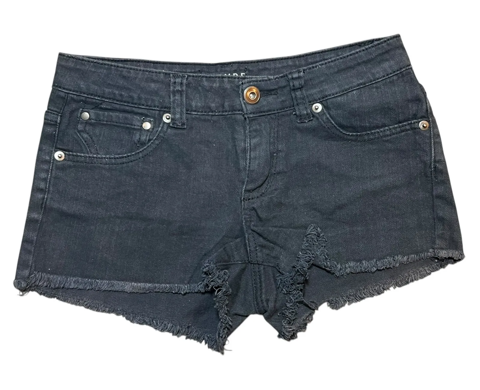 EUC - no call outs Rock these edgy EMPYRE black denim cutoff shorts and channel your inner rebel. The distressed frayed hem adds a touch of rock-and-roll attitude, perfect for making a statement. Designed for comfort and style, these shorts feature a classic five-pocket design for practicality. Their versatile black wash makes them a perfect foundation for countless outfits, whether you're heading to a concert or enjoying a casual day out. Style: Cut-Off Department: Women Fabric Type: Denim Material: Cotton Blend, Spandex Occasion: Casual Accents: Fringe, Button Pattern: Solid Features: Pockets, Stretch Fit: Slim Front Type: Flat Front Closure: Button Rise: Mid (8.5-10.5 in) Fabric Wash: Dark Inseam: 2 in Season: Summer Pocket Type: 5-Pocket Design Keywords: EMPYRE shorts, black denim, cutoff shorts, frayed hem, distressed denim, summer shorts, casual wear, streetwear, rock and roll, edgy style, festival fashion, warm weather, everyday shorts