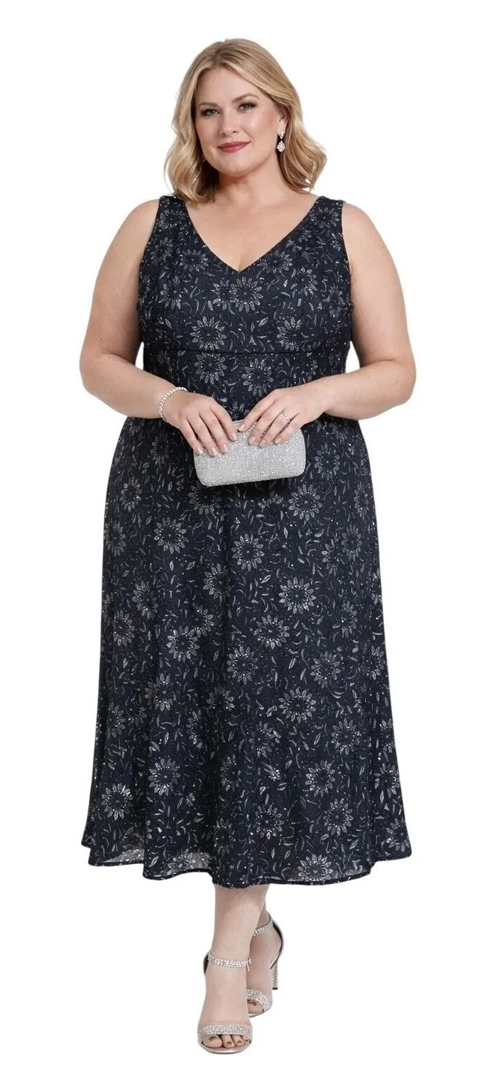 Sleeveless Pullover style V-neckline Woven lace overlay fabric Shell 50% nylon 40% polyester 10% spandex Lining 100% polyester Stretch Plus size fit Floral lace pattern Fully lined Maxi length Elegant drape Evening Romantic Formal Event Special Occasion Approx. Measurements: Pit to pit: 20.5" Waist: 36" Length: 48"