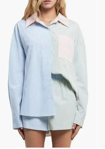 Colorblock Stripe Cotton Blend Button-Up Shirt Blue - $60 New With Tags - From MiniBazar