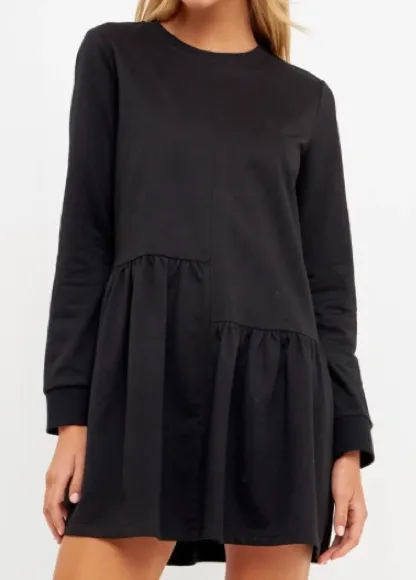 English Factory Knit Unbalanced Seam Long Sleeve Mini Dress in Black Size Small - $35 - From Callie