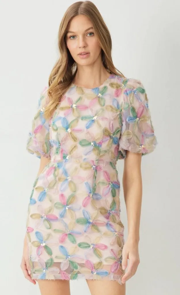 Entro Blush Jacquard Floral Mini Dress Blue Size L - $75 New With Tags - From Deidre